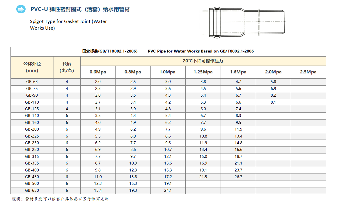4、耐水压强度,耐外压强度,耐衝击强度良好,适用于各种配管工程。