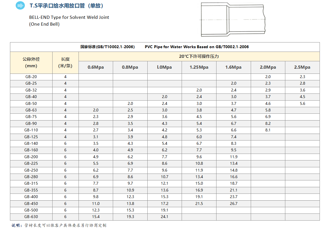 4、耐水压强度,耐外压强度,耐衝击强度良好,适用于各种配管工程。