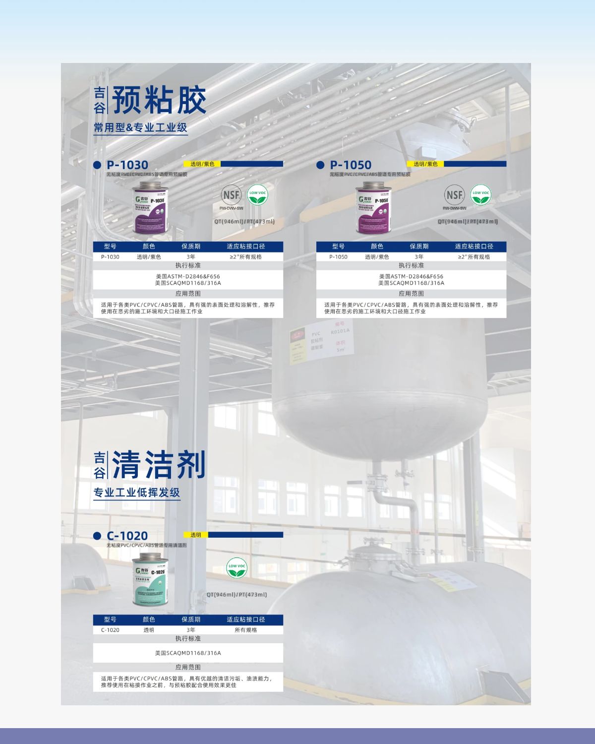 预粘胶有良好的清洁软化粘接表面,使得胶水更容易渗透粘接表面,达到粘接最大强度。低挥发低挥发LovVOC环保级。应用在民用或工业PVC/CPVC/ABS管道粘接口清洁软化,施工环境和天气苛刻条件时,特别是大口径装配,可降低粘接难度。